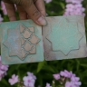 В прорези этого универсального инструмента удобно наносить краску различными способами: спонжем, круглой кистью или аэрографом. Трафарет легко вдавливается в глину, а также подходит для декоративной штукатурки. Для нанесения акриловых фактурных гелей наилучшим способом является использование шпателя, который также удобно использовать для удаления излишков краски без повреждения трафарета.